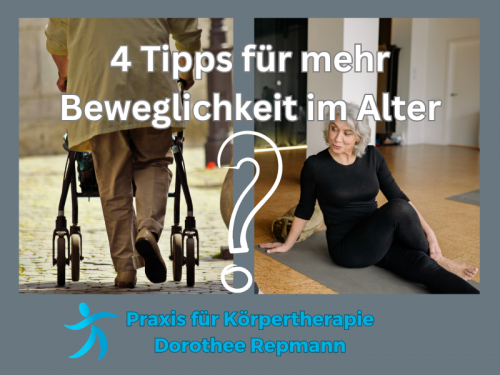 Hier sind vier einfache, aber wirkungsvolle Tipps aus meiner physiotherapeutischen Praxis, mit denen Sie Ihre Beweglichkeit möglichst lange erhalten können.
