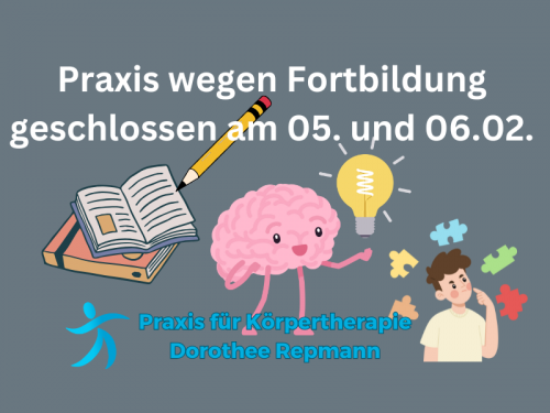 Ich besuche vom 05.-07.02. das nächste Modul meiner Fortbildung in Funktioneller Orthonomie und Integration (FOI). Deshalb bleibt meine Praxis am Donnerstag und Freitag geschlossen.